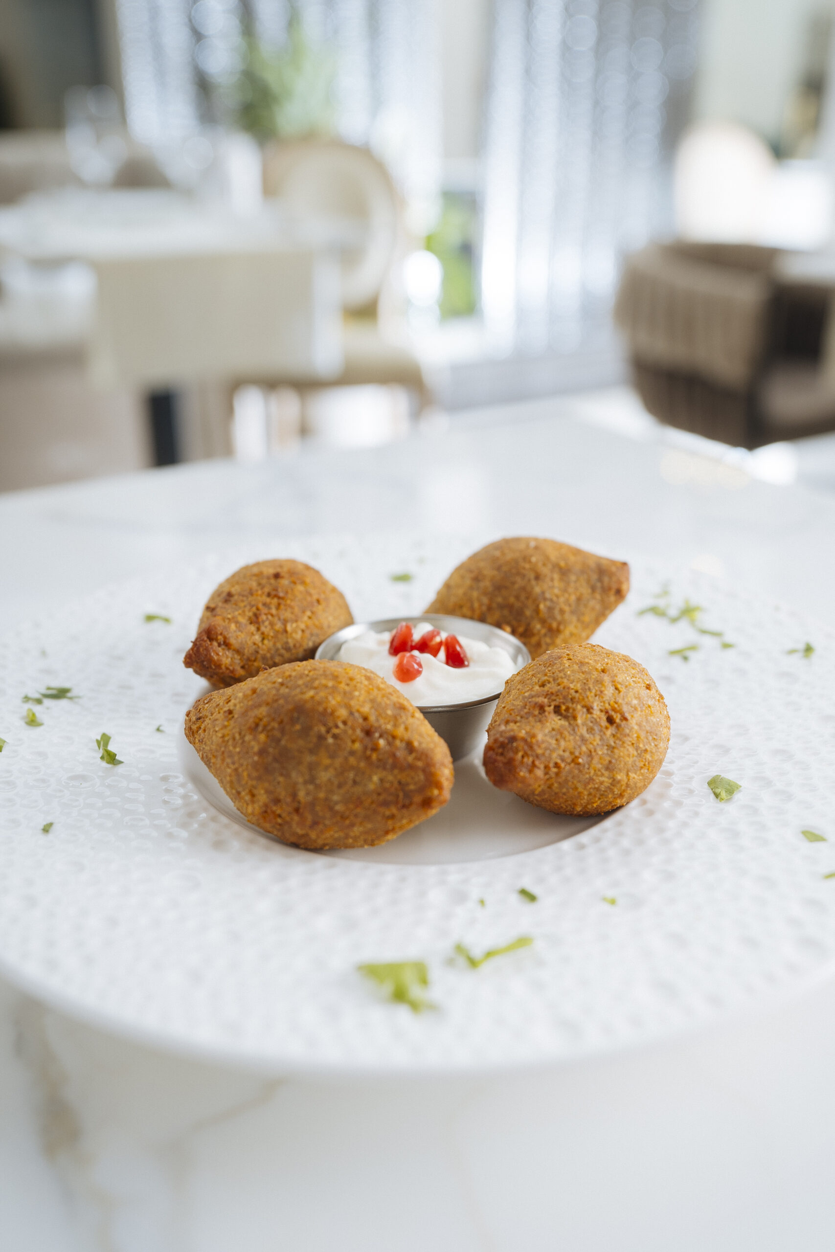 Tra pavimenti in marmo pregiato, arredi raffinati e un design curato in ogni dettaglio, Shams Beirut Gourmet accoglie i suoi ospiti in un ambiente di lusso pensato per esaltare ogni esperienza gastronomica. Ogni elemento della sala, dalle luci soffuse ai tessuti ricercati, è studiato per creare un’atmosfera calda e sofisticata. Qui eleganza e comfort si fondono armoniosamente, offrendo la cornice perfetta per vivere la vera arte culinaria libanese, dove ogni piatto è valorizzato dal fascino unico della location.